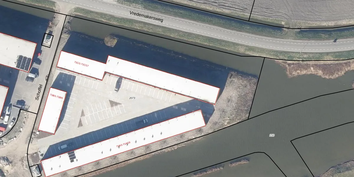 Schoffel 71-C-14 is gelegen op kadastraal perceel KGL02AB2073. Deze kadastrale aanduiding is uniek en wordt gebruikt door het Kadaster om eigendomsrechten en andere zakelijke rechten vast te leggen. Het perceel maakt onderdeel uit van de kadastrale gemeente Wester-Koggenland.