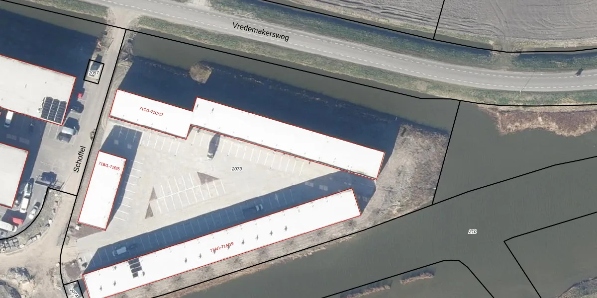 Schoffel 71-C-13 is gelegen op kadastraal perceel KGL02AB2073. Deze kadastrale aanduiding is uniek en wordt gebruikt door het Kadaster om eigendomsrechten en andere zakelijke rechten vast te leggen. Het perceel maakt onderdeel uit van de kadastrale gemeente Wester-Koggenland.