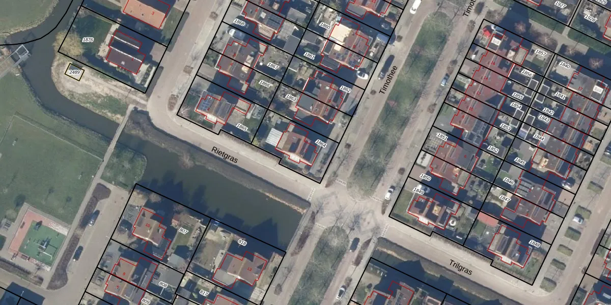 Het perceel waarop Timothee 1 staat heeft een oppervlakte van 359 m². Dit is een groot perceel. De perceeloppervlakte wordt geregistreerd door het Kadaster. Gedetailleerde informatie over de maten van dit perceel kunt u vinden in het rapport Kadastrale kaart met maatvoering van Timothee 1.