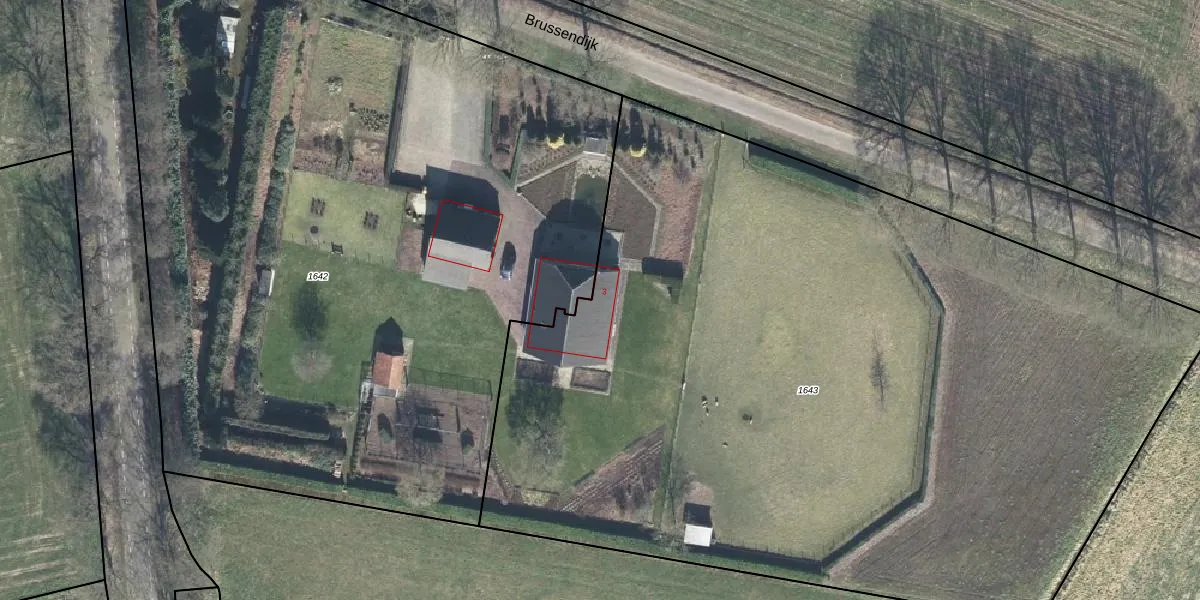 Het perceel waarop Brussendijk 3 staat heeft een oppervlakte van 6560 m². Dit is een zeer groot perceel. De perceeloppervlakte wordt geregistreerd door het Kadaster. Gedetailleerde informatie over de maten van dit perceel kunt u vinden in het rapport Kadastrale kaart met maatvoering van Brussendijk 3.