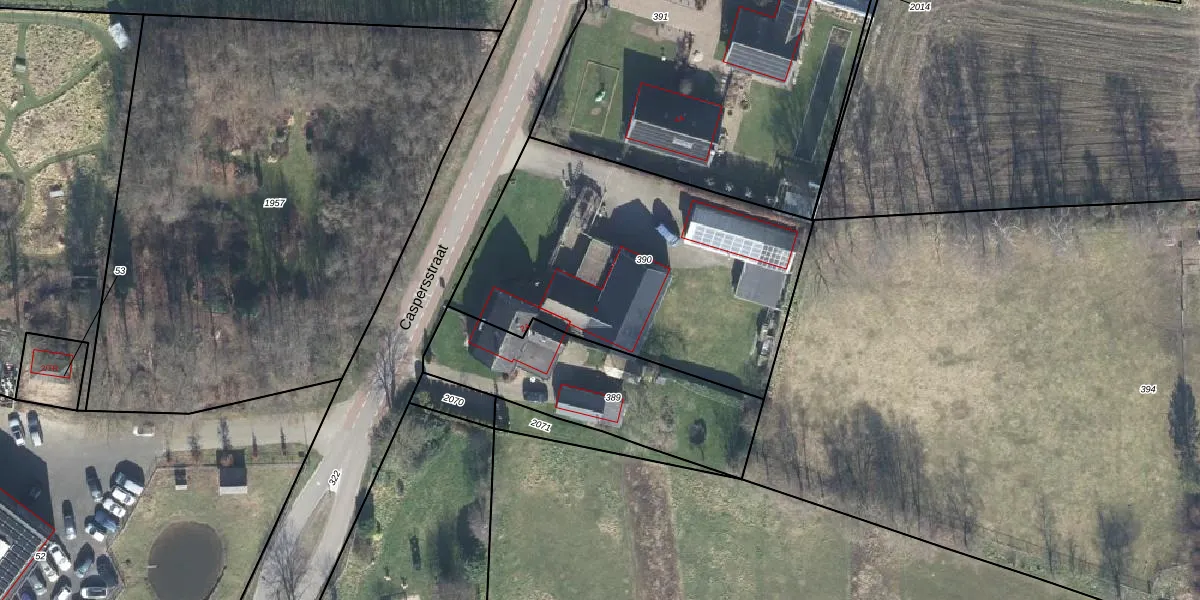 Het perceel waarop Caspersstraat 4 staat heeft een oppervlakte van 1600 m². Dit is een zeer groot perceel. De perceeloppervlakte wordt geregistreerd door het Kadaster. Gedetailleerde informatie over de maten van dit perceel kunt u vinden in het rapport Kadastrale kaart met maatvoering van Caspersstraat 4.