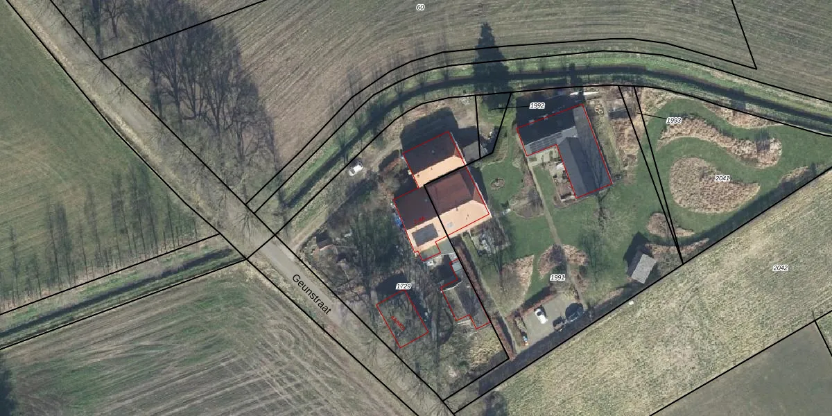 Het perceel waarop Geunstraat 4 staat heeft een oppervlakte van 2040 m². Dit is een zeer groot perceel. De perceeloppervlakte wordt geregistreerd door het Kadaster. Gedetailleerde informatie over de maten van dit perceel kunt u vinden in het rapport Kadastrale kaart met maatvoering van Geunstraat 4.