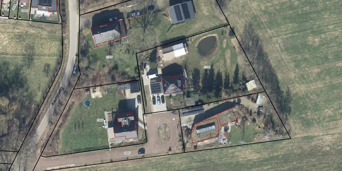 Keizerweg 1-B is gelegen op kadastraal perceel DPL00F2706. Deze kadastrale aanduiding is uniek en wordt gebruikt door het Kadaster om eigendomsrechten en andere zakelijke rechten vast te leggen. Het perceel maakt onderdeel uit van de kadastrale gemeente Dinxperlo.