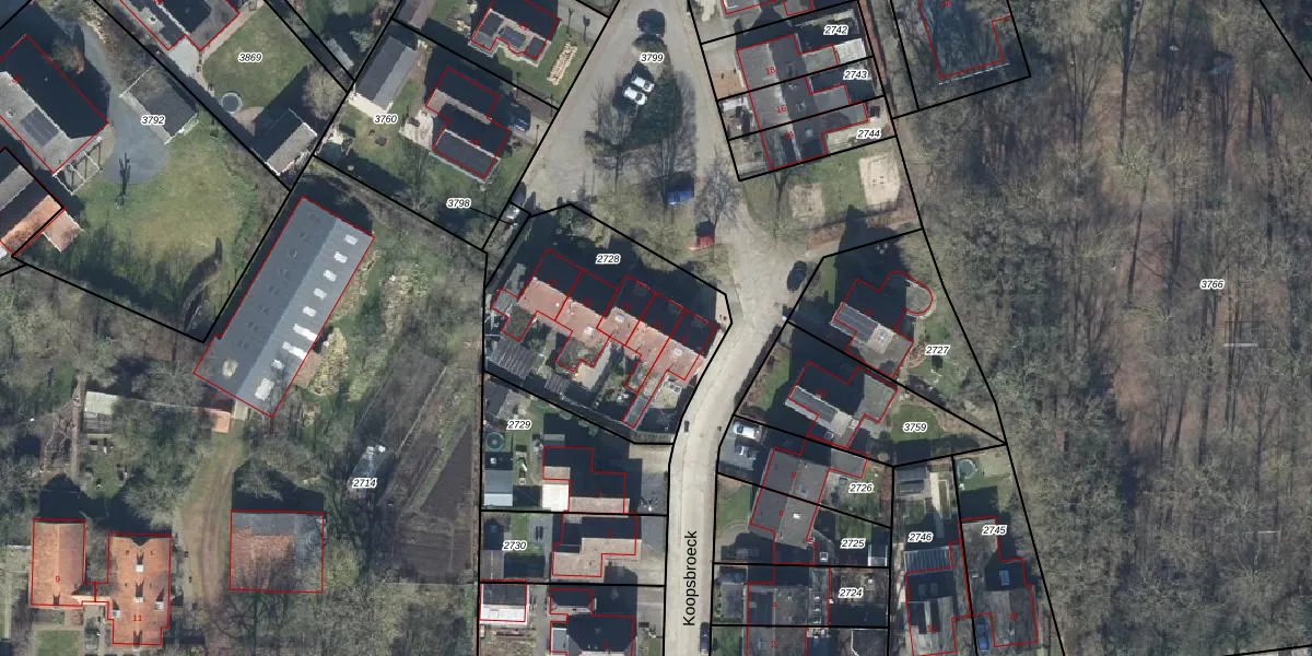 Het perceel waarop Koopsbroeck 11 staat heeft een oppervlakte van 913 m². Dit is een groot perceel. De perceeloppervlakte wordt geregistreerd door het Kadaster. Gedetailleerde informatie over de maten van dit perceel kunt u vinden in het rapport Kadastrale kaart met maatvoering van Koopsbroeck 11.