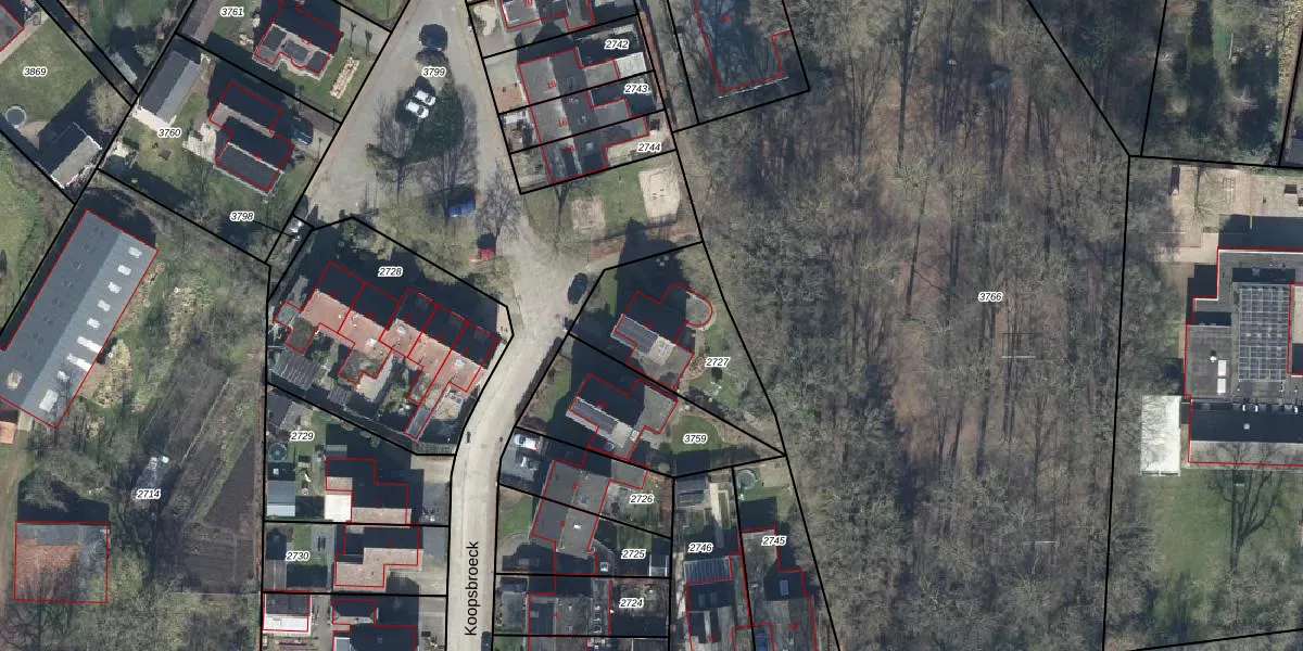 Het perceel waarop Koopsbroeck 12 staat heeft een oppervlakte van 504 m². Dit is een groot perceel. De perceeloppervlakte wordt geregistreerd door het Kadaster. Gedetailleerde informatie over de maten van dit perceel kunt u vinden in het rapport Kadastrale kaart met maatvoering van Koopsbroeck 12.