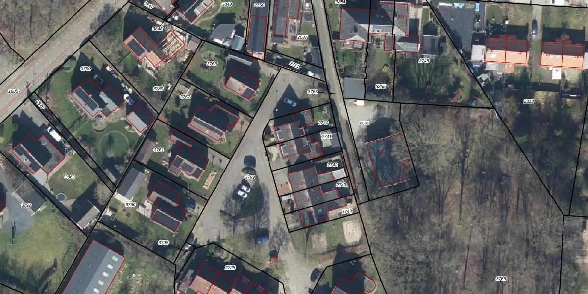 Gebruik de zoekbalk of klik op een perceel voor informatie over de adressen binnen dit perceel.