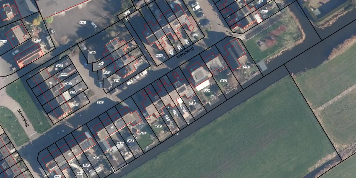 Merelslag 40 is gelegen op kadastraal perceel MDT01C7199. Deze kadastrale aanduiding is uniek en wordt gebruikt door het Kadaster om eigendomsrechten en andere zakelijke rechten vast te leggen. Het perceel maakt onderdeel uit van de kadastrale gemeente Mijdrecht.