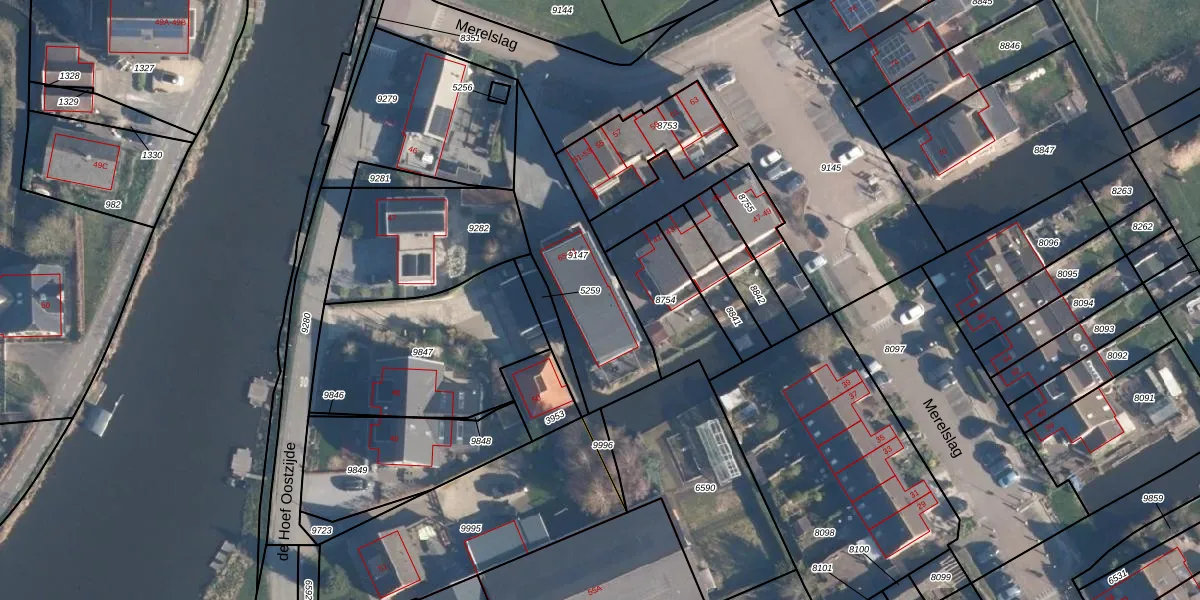Merelslag 65 is gelegen op kadastraal perceel MDT01C9147. Deze kadastrale aanduiding is uniek en wordt gebruikt door het Kadaster om eigendomsrechten en andere zakelijke rechten vast te leggen. Het perceel maakt onderdeel uit van de kadastrale gemeente Mijdrecht.