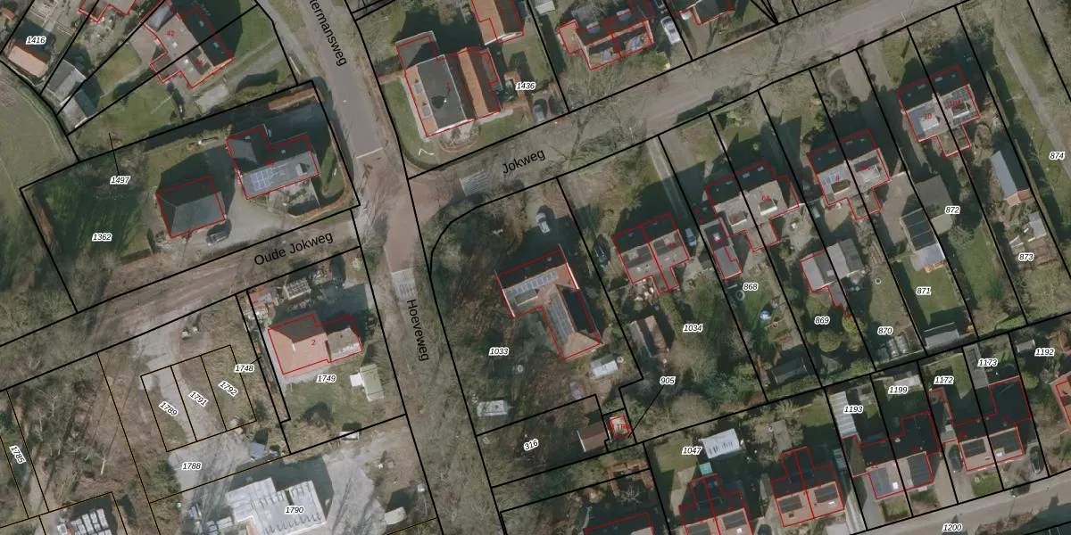Het perceel waarop Jokweg 2 staat heeft een oppervlakte van 1245 m². Dit is een zeer groot perceel. De perceeloppervlakte wordt geregistreerd door het Kadaster. Gedetailleerde informatie over de maten van dit perceel kunt u vinden in het rapport Kadastrale kaart met maatvoering van Jokweg 2.