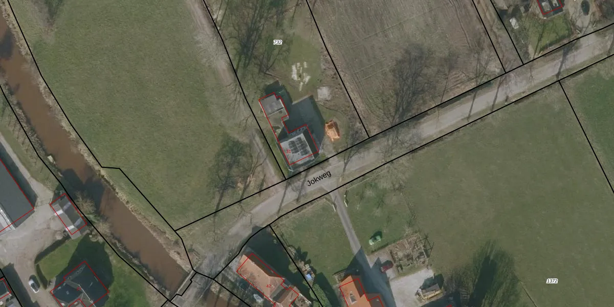 Jokweg 31 is gelegen op kadastraal perceel NWD02N732. Deze kadastrale aanduiding is uniek en wordt gebruikt door het Kadaster om eigendomsrechten en andere zakelijke rechten vast te leggen. Het perceel maakt onderdeel uit van de kadastrale gemeente Noordwolde.
