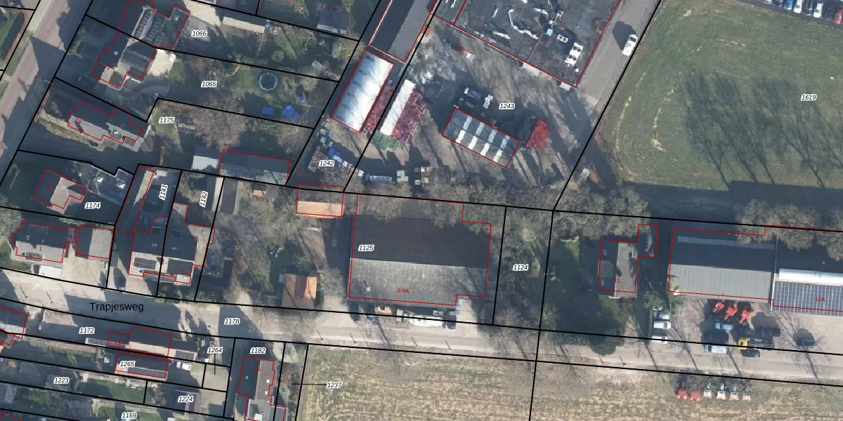 Trapjesweg 9-A is gelegen op kadastraal perceel EDE01L1125. Deze kadastrale aanduiding is uniek en wordt gebruikt door het Kadaster om eigendomsrechten en andere zakelijke rechten vast te leggen. Het perceel maakt onderdeel uit van de kadastrale gemeente Ede.