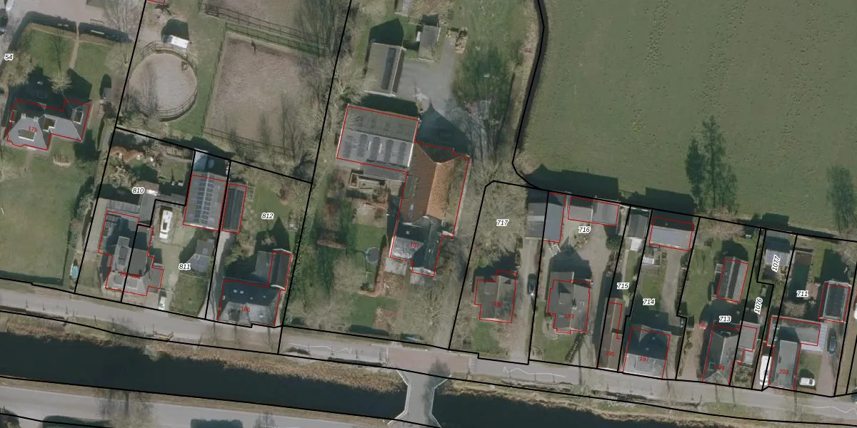 Het perceel waarop Ds Veenweg 187 staat heeft een oppervlakte van 1,2 ha. Dit is een zeer groot perceel. De perceeloppervlakte wordt geregistreerd door het Kadaster. Gedetailleerde informatie over de maten van dit perceel kunt u vinden in het rapport Kadastrale kaart met maatvoering van Ds Veenweg 187.