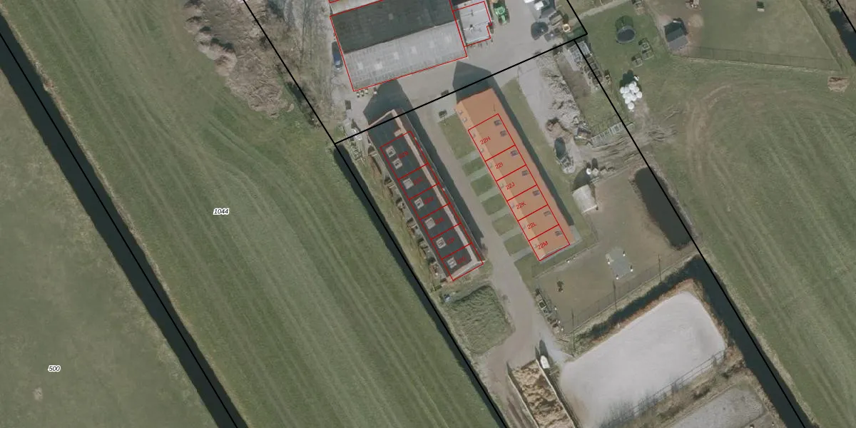 Het perceel waarop Ds Veenweg 22-D staat heeft een oppervlakte van 1,1 ha. Dit is een zeer groot perceel. De perceeloppervlakte wordt geregistreerd door het Kadaster. Gedetailleerde informatie over de maten van dit perceel kunt u vinden in het rapport Kadastrale kaart met maatvoering van Ds Veenweg 22-D.