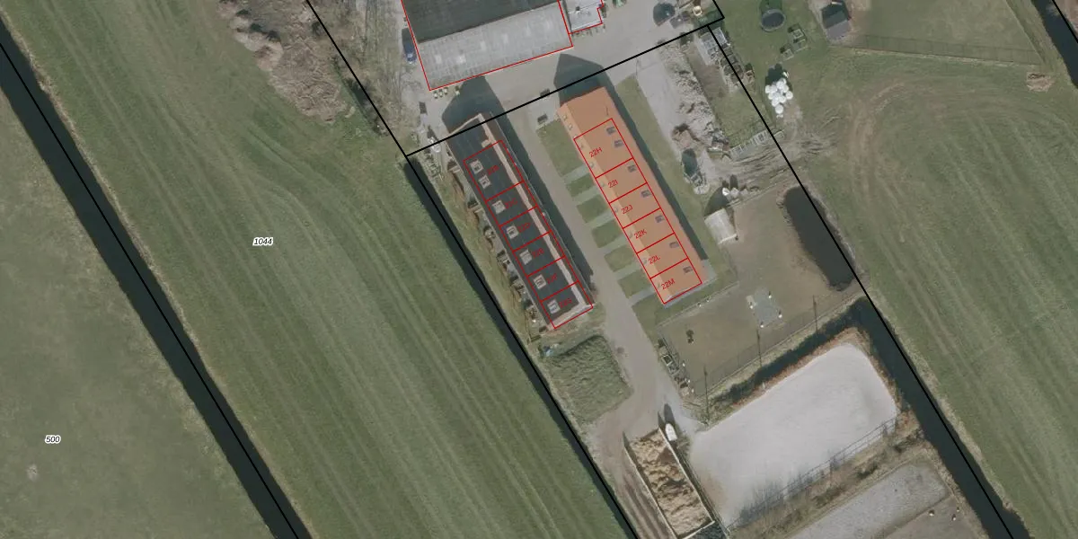 Het perceel waarop Ds Veenweg 22-E staat heeft een oppervlakte van 1,1 ha. Dit is een zeer groot perceel. De perceeloppervlakte wordt geregistreerd door het Kadaster. Gedetailleerde informatie over de maten van dit perceel kunt u vinden in het rapport Kadastrale kaart met maatvoering van Ds Veenweg 22-E.