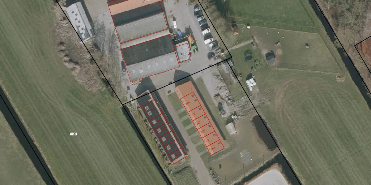 Het perceel waarop Ds Veenweg 22-H staat heeft een oppervlakte van 1,1 ha. Dit is een zeer groot perceel. De perceeloppervlakte wordt geregistreerd door het Kadaster. Gedetailleerde informatie over de maten van dit perceel kunt u vinden in het rapport Kadastrale kaart met maatvoering van Ds Veenweg 22-H.
