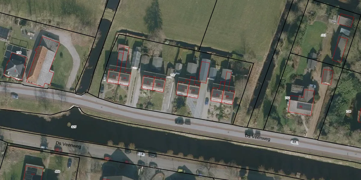 Het perceel waarop Ds Veenweg 7 staat heeft een oppervlakte van 2865 m². Dit is een zeer groot perceel. De perceeloppervlakte wordt geregistreerd door het Kadaster. Gedetailleerde informatie over de maten van dit perceel kunt u vinden in het rapport Kadastrale kaart met maatvoering van Ds Veenweg 7.
