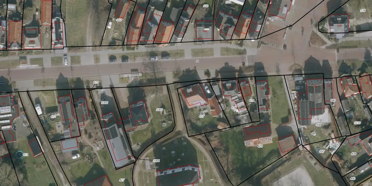 Gebruik de zoekbalk of klik op een perceel voor informatie over de adressen binnen dit perceel.