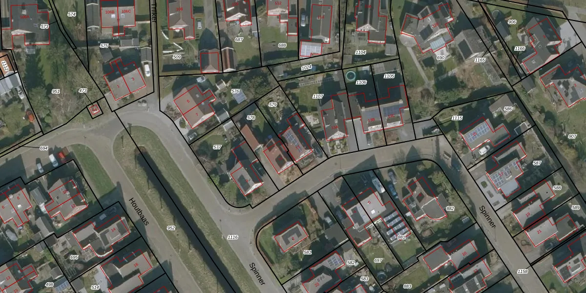 Het perceel waarop Spinner 13 staat heeft een oppervlakte van 307 m². Dit is een groot perceel. De perceeloppervlakte wordt geregistreerd door het Kadaster. Gedetailleerde informatie over de maten van dit perceel kunt u vinden in het rapport Kadastrale kaart met maatvoering van Spinner 13.