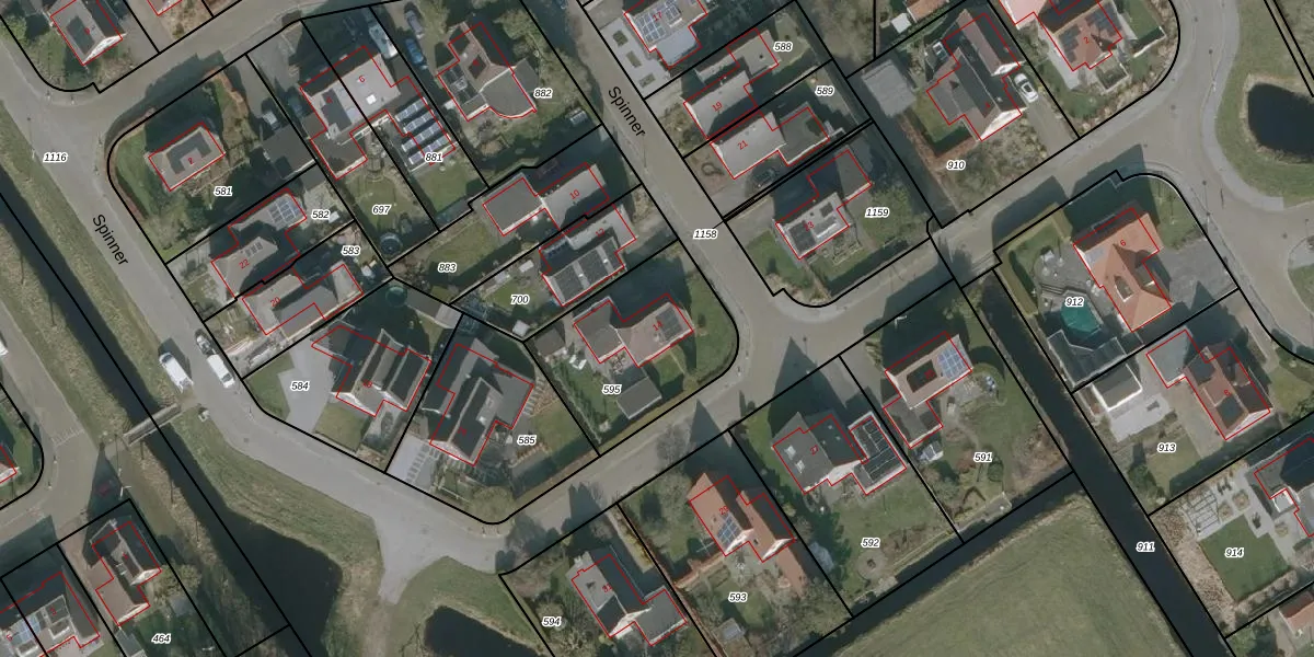 Het perceel waarop Spinner 14 staat heeft een oppervlakte van 585 m². Dit is een groot perceel. De perceeloppervlakte wordt geregistreerd door het Kadaster. Gedetailleerde informatie over de maten van dit perceel kunt u vinden in het rapport Kadastrale kaart met maatvoering van Spinner 14.