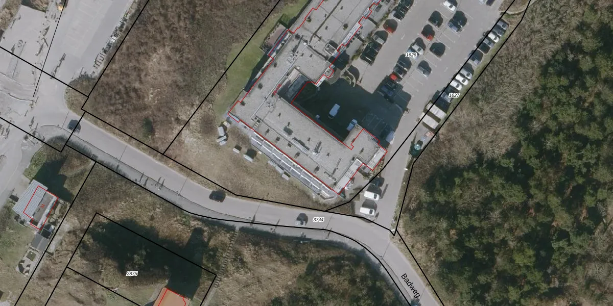 Het perceel waarop Badweg 100 staat heeft een oppervlakte van 6250 m². Dit is een zeer groot perceel. De perceeloppervlakte wordt geregistreerd door het Kadaster. Gedetailleerde informatie over de maten van dit perceel kunt u vinden in het rapport Kadastrale kaart met maatvoering van Badweg 100.