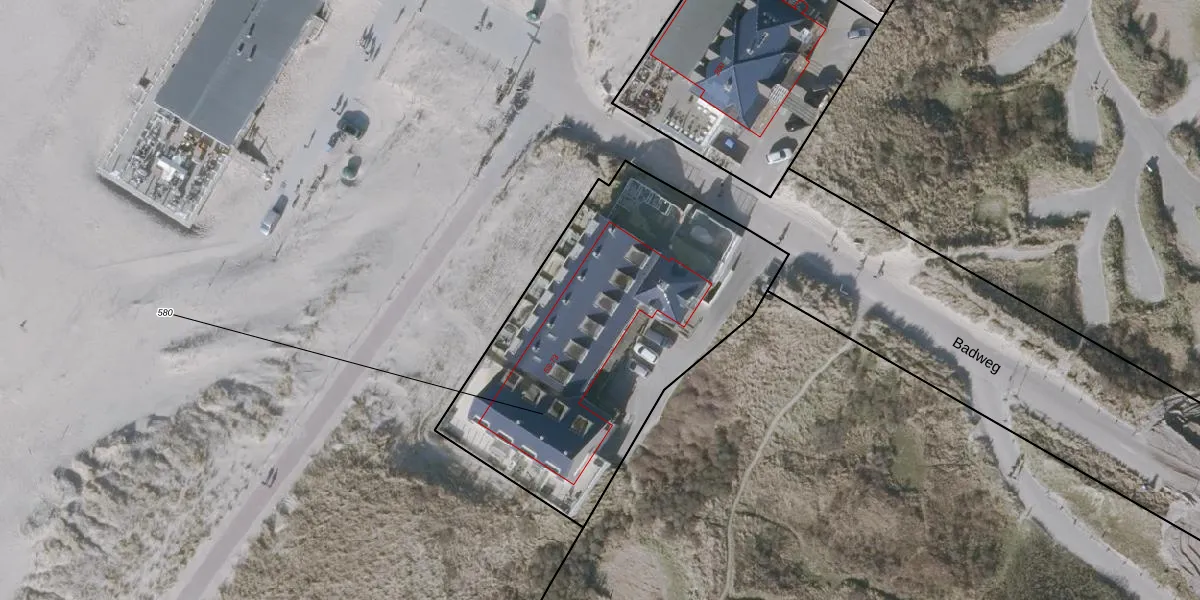 Badweg 59 is gelegen op kadastraal perceel TEL00G580. Deze kadastrale aanduiding is uniek en wordt gebruikt door het Kadaster om eigendomsrechten en andere zakelijke rechten vast te leggen. Het perceel maakt onderdeel uit van de kadastrale gemeente Texel.