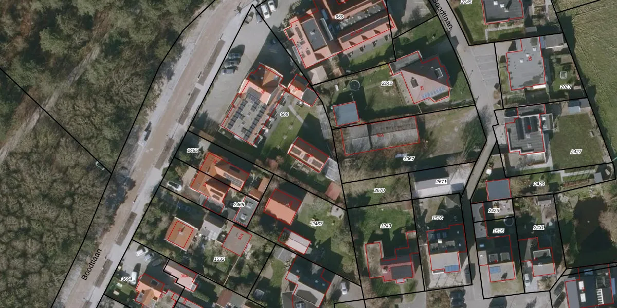 Het perceel waarop Boodtlaan 38-B staat heeft een oppervlakte van 1630 m². Dit is een zeer groot perceel. De perceeloppervlakte wordt geregistreerd door het Kadaster. Gedetailleerde informatie over de maten van dit perceel kunt u vinden in het rapport Kadastrale kaart met maatvoering van Boodtlaan 38-B.