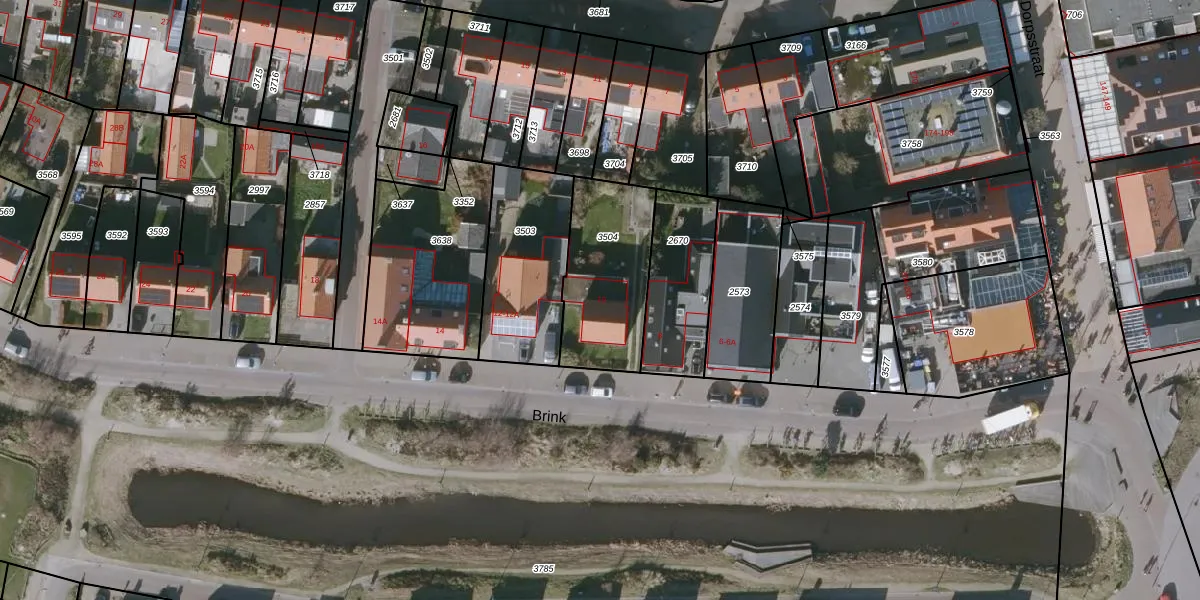 Het perceel waarop Brink 10 staat heeft een oppervlakte van 427 m². Dit is een groot perceel. De perceeloppervlakte wordt geregistreerd door het Kadaster. Gedetailleerde informatie over de maten van dit perceel kunt u vinden in het rapport Kadastrale kaart met maatvoering van Brink 10.