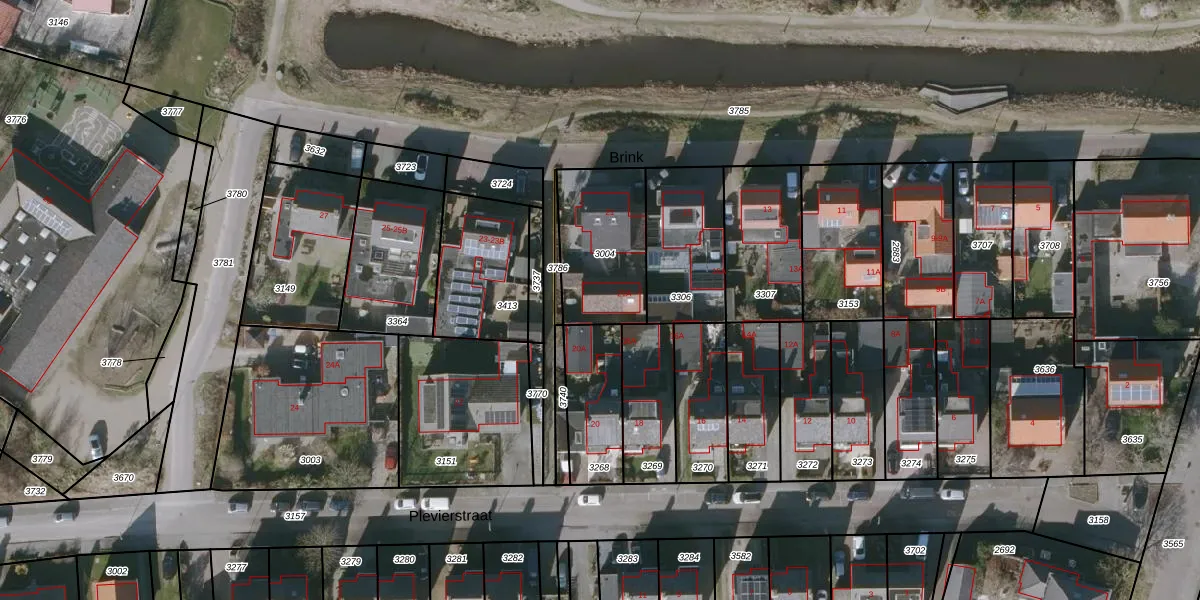 Het perceel waarop Brink 21-A staat heeft een oppervlakte van 373 m². Dit is een groot perceel. De perceeloppervlakte wordt geregistreerd door het Kadaster. Gedetailleerde informatie over de maten van dit perceel kunt u vinden in het rapport Kadastrale kaart met maatvoering van Brink 21-A.