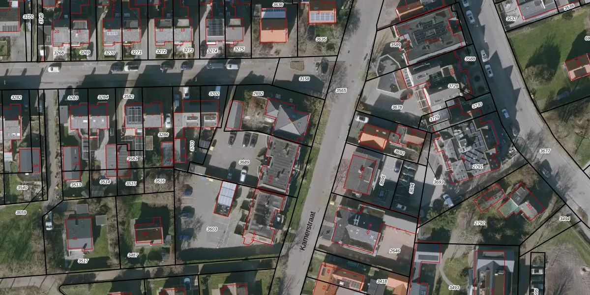 Het perceel waarop Kamerstraat 6 staat heeft een oppervlakte van 652 m². Dit is een groot perceel. De perceeloppervlakte wordt geregistreerd door het Kadaster. Gedetailleerde informatie over de maten van dit perceel kunt u vinden in het rapport Kadastrale kaart met maatvoering van Kamerstraat 6.