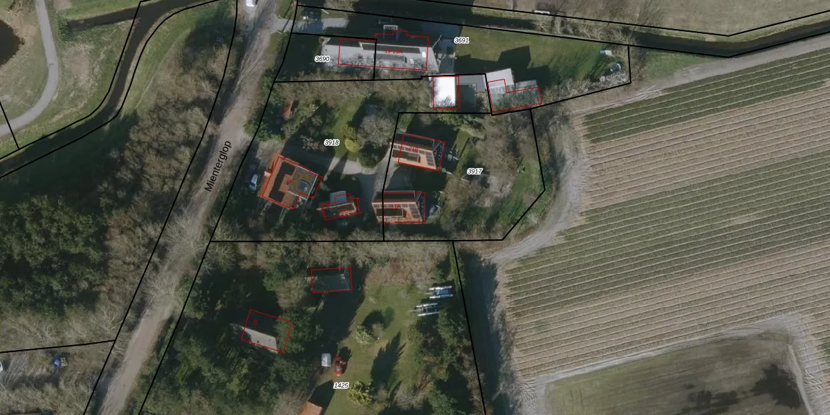 Het perceel waarop Mienterglop 21-A staat heeft een oppervlakte van 1065 m². Dit is een zeer groot perceel. De perceeloppervlakte wordt geregistreerd door het Kadaster. Gedetailleerde informatie over de maten van dit perceel kunt u vinden in het rapport Kadastrale kaart met maatvoering van Mienterglop 21-A.