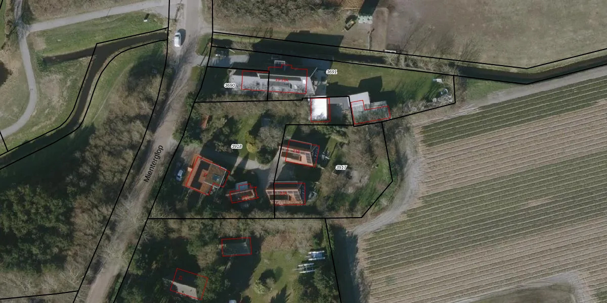 Het perceel waarop Mienterglop 21-B staat heeft een oppervlakte van 1065 m². Dit is een zeer groot perceel. De perceeloppervlakte wordt geregistreerd door het Kadaster. Gedetailleerde informatie over de maten van dit perceel kunt u vinden in het rapport Kadastrale kaart met maatvoering van Mienterglop 21-B.