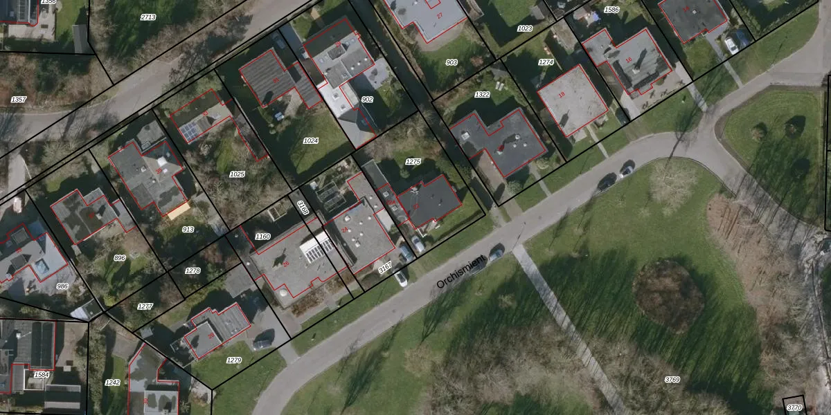 Het perceel waarop Orchismient 22 staat heeft een oppervlakte van 595 m². Dit is een groot perceel. De perceeloppervlakte wordt geregistreerd door het Kadaster. Gedetailleerde informatie over de maten van dit perceel kunt u vinden in het rapport Kadastrale kaart met maatvoering van Orchismient 22.