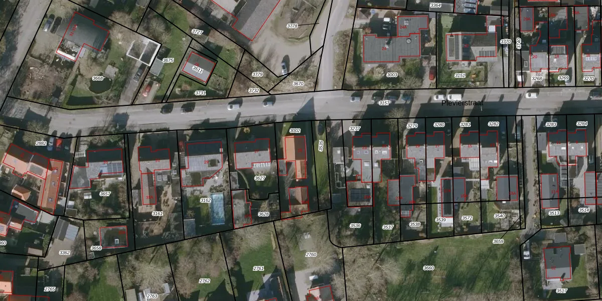 Het perceel waarop Plevierstraat 25 staat heeft een oppervlakte van 395 m². Dit is een groot perceel. De perceeloppervlakte wordt geregistreerd door het Kadaster. Gedetailleerde informatie over de maten van dit perceel kunt u vinden in het rapport Kadastrale kaart met maatvoering van Plevierstraat 25.
