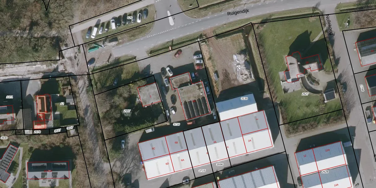Het perceel waarop Ruigendijk 2-B staat heeft een oppervlakte van 2896 m². Dit is een zeer groot perceel. De perceeloppervlakte wordt geregistreerd door het Kadaster. Gedetailleerde informatie over de maten van dit perceel kunt u vinden in het rapport Kadastrale kaart met maatvoering van Ruigendijk 2-B.