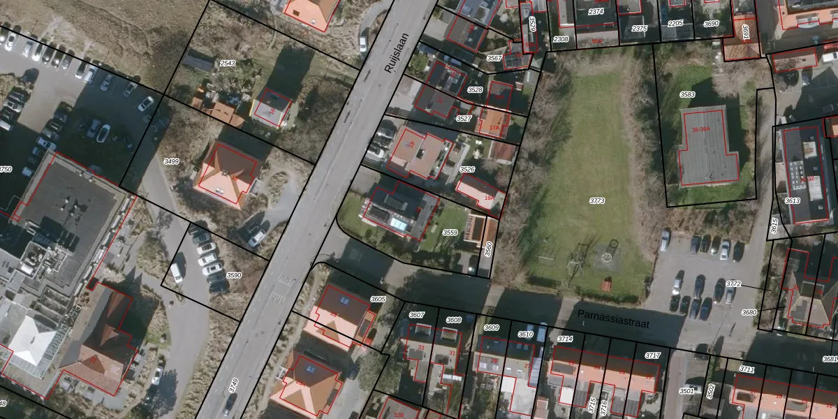 Het perceel waarop Ruijslaan 21 staat heeft een oppervlakte van 579 m². Dit is een groot perceel. De perceeloppervlakte wordt geregistreerd door het Kadaster. Gedetailleerde informatie over de maten van dit perceel kunt u vinden in het rapport Kadastrale kaart met maatvoering van Ruijslaan 21.