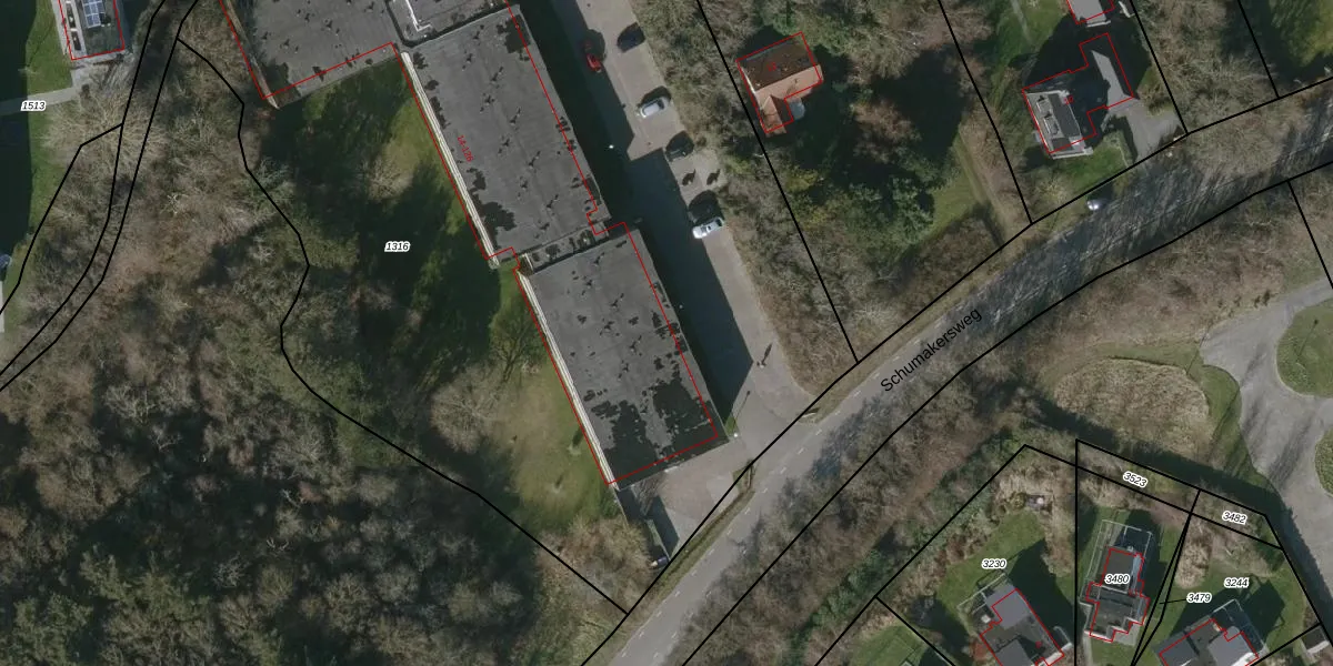 Het perceel waarop Schumakersweg 22 staat heeft een oppervlakte van 8024 m². Dit is een zeer groot perceel. De perceeloppervlakte wordt geregistreerd door het Kadaster. Gedetailleerde informatie over de maten van dit perceel kunt u vinden in het rapport Kadastrale kaart met maatvoering van Schumakersweg 22.