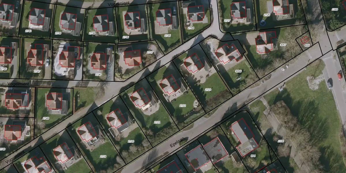 Het perceel waarop Vogelmient 15 staat heeft een oppervlakte van 671 m². Dit is een groot perceel. De perceeloppervlakte wordt geregistreerd door het Kadaster. Gedetailleerde informatie over de maten van dit perceel kunt u vinden in het rapport Kadastrale kaart met maatvoering van Vogelmient 15.