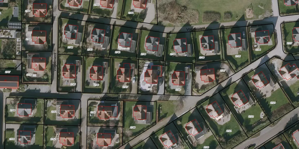 Het perceel waarop Vogelmient 41 staat heeft een oppervlakte van 410 m². Dit is een groot perceel. De perceeloppervlakte wordt geregistreerd door het Kadaster. Gedetailleerde informatie over de maten van dit perceel kunt u vinden in het rapport Kadastrale kaart met maatvoering van Vogelmient 41.