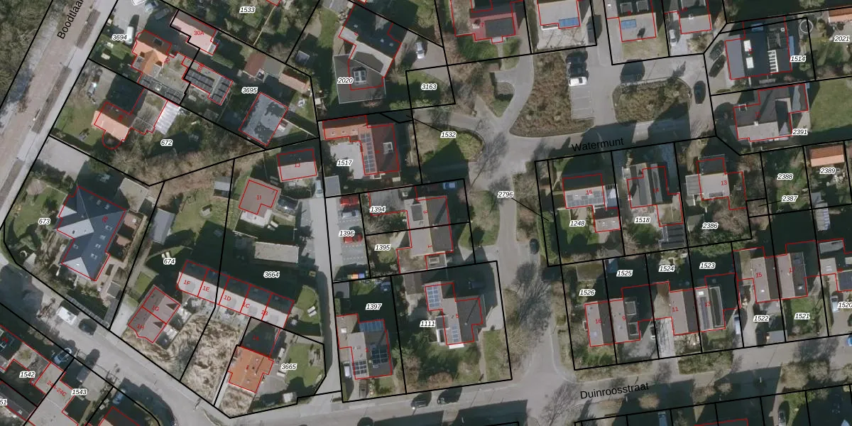 Gebruik de zoekbalk of klik op een perceel voor informatie over de adressen binnen dit perceel.