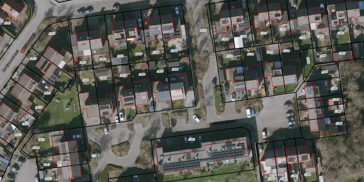 Wintergroen 1 is gelegen op kadastraal perceel TEL00T1404. Deze kadastrale aanduiding is uniek en wordt gebruikt door het Kadaster om eigendomsrechten en andere zakelijke rechten vast te leggen. Het perceel maakt onderdeel uit van de kadastrale gemeente Texel.
