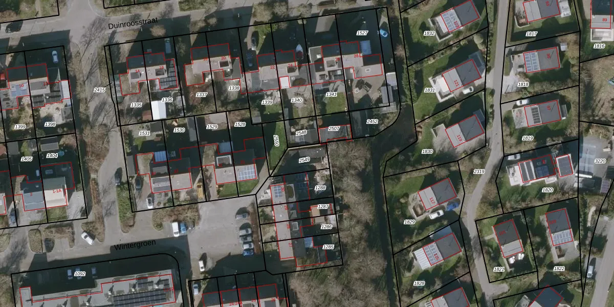 Gebruik de zoekbalk of klik op een perceel voor informatie over de adressen binnen dit perceel.
