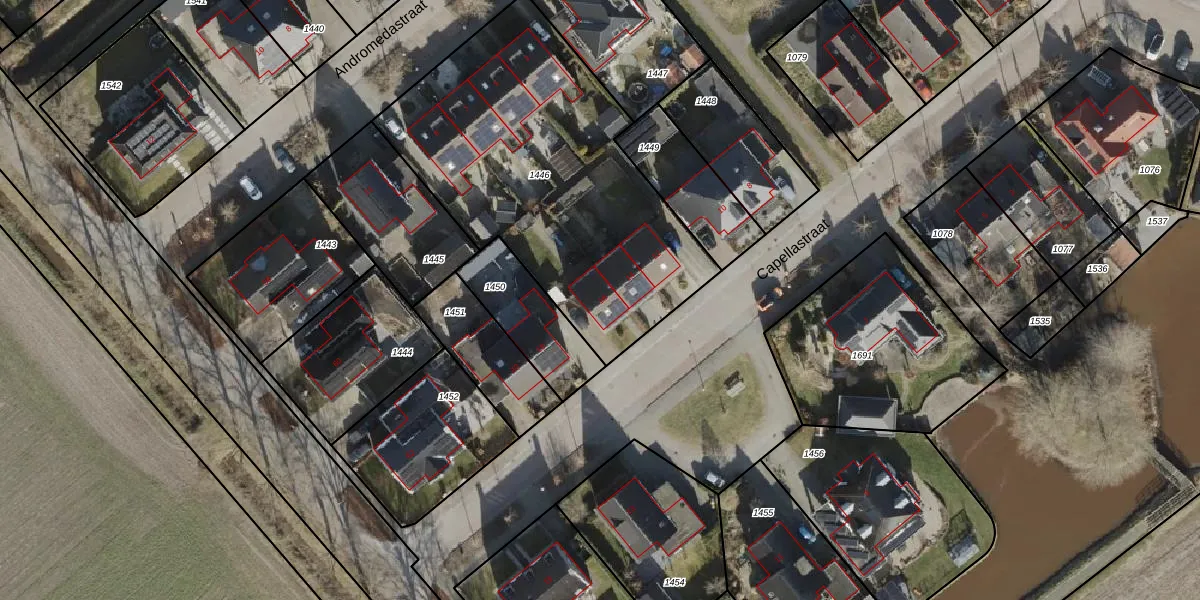 Het perceel waarop Capellastraat 16 staat heeft een oppervlakte van 1651 m². Dit is een zeer groot perceel. De perceeloppervlakte wordt geregistreerd door het Kadaster. Gedetailleerde informatie over de maten van dit perceel kunt u vinden in het rapport Kadastrale kaart met maatvoering van Capellastraat 16.