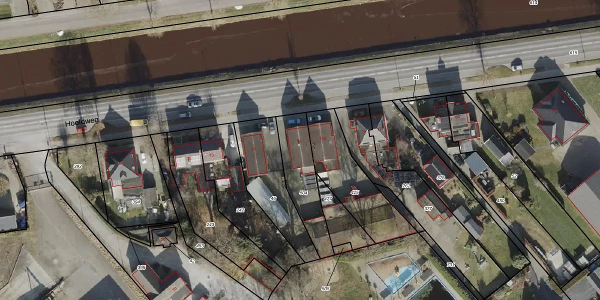 Het perceel waarop Hoofdweg 75 staat heeft een oppervlakte van 445 m². Dit is een groot perceel. De perceeloppervlakte wordt geregistreerd door het Kadaster. Gedetailleerde informatie over de maten van dit perceel kunt u vinden in het rapport Kadastrale kaart met maatvoering van Hoofdweg 75.