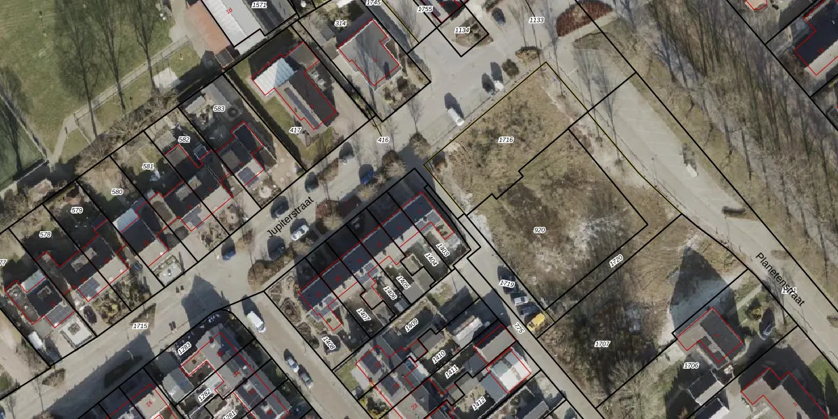 Het perceel waarop Jupiterstraat 2 staat heeft een oppervlakte van 181 m². Dit is een middelgroot perceel. De perceeloppervlakte wordt geregistreerd door het Kadaster. Gedetailleerde informatie over de maten van dit perceel kunt u vinden in het rapport Kadastrale kaart met maatvoering van Jupiterstraat 2.