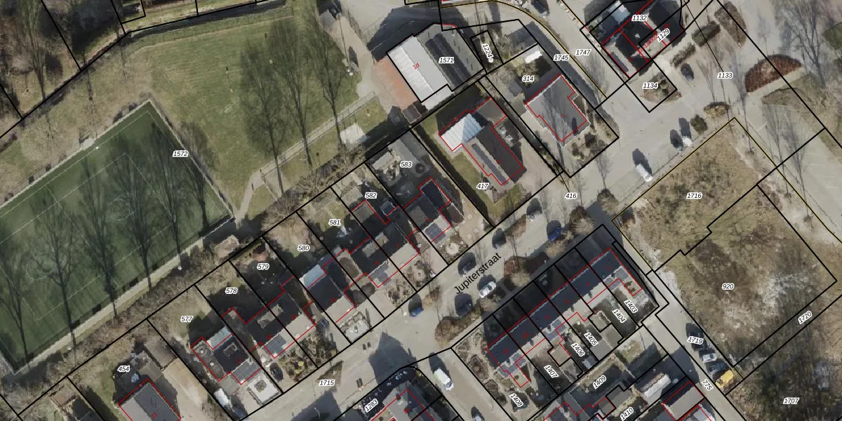 Het perceel waarop Jupiterstraat 5 staat heeft een oppervlakte van 432 m². Dit is een groot perceel. De perceeloppervlakte wordt geregistreerd door het Kadaster. Gedetailleerde informatie over de maten van dit perceel kunt u vinden in het rapport Kadastrale kaart met maatvoering van Jupiterstraat 5.