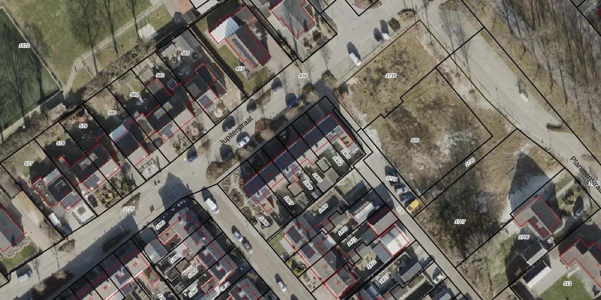 Het perceel waarop Jupiterstraat 6 staat heeft een oppervlakte van 156 m². Dit is een middelgroot perceel. De perceeloppervlakte wordt geregistreerd door het Kadaster. Gedetailleerde informatie over de maten van dit perceel kunt u vinden in het rapport Kadastrale kaart met maatvoering van Jupiterstraat 6.