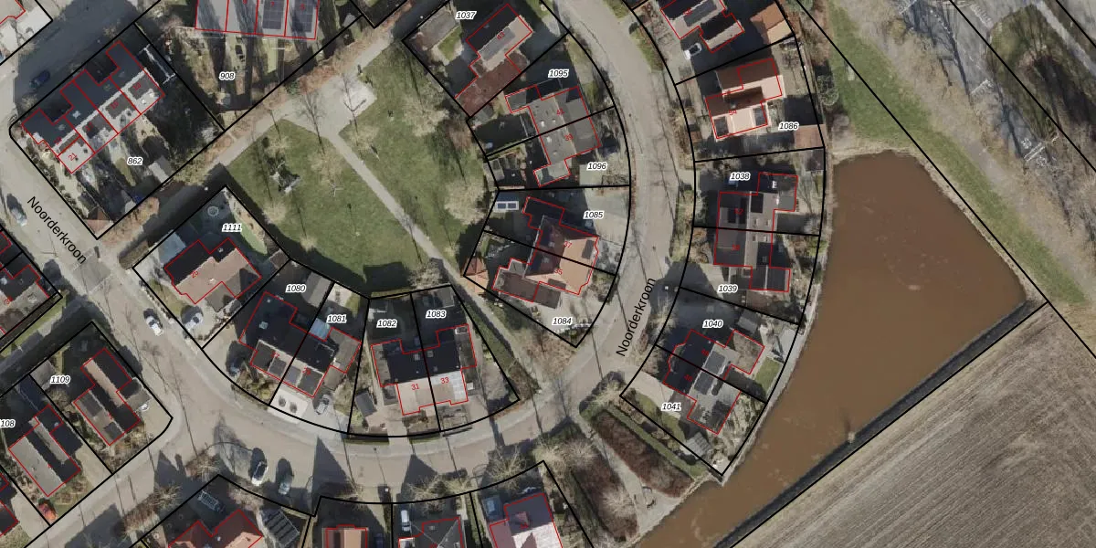 Het perceel waarop Noorderkroon 35 staat heeft een oppervlakte van 304 m². Dit is een groot perceel. De perceeloppervlakte wordt geregistreerd door het Kadaster. Gedetailleerde informatie over de maten van dit perceel kunt u vinden in het rapport Kadastrale kaart met maatvoering van Noorderkroon 35.