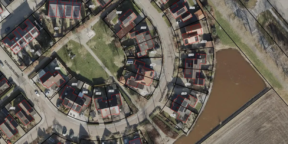Het perceel waarop Noorderkroon 37 staat heeft een oppervlakte van 303 m². Dit is een groot perceel. De perceeloppervlakte wordt geregistreerd door het Kadaster. Gedetailleerde informatie over de maten van dit perceel kunt u vinden in het rapport Kadastrale kaart met maatvoering van Noorderkroon 37.