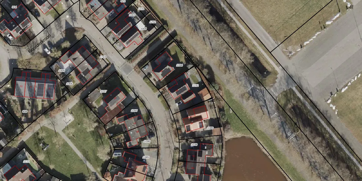 Het perceel waarop Noorderkroon 56 staat heeft een oppervlakte van 418 m². Dit is een groot perceel. De perceeloppervlakte wordt geregistreerd door het Kadaster. Gedetailleerde informatie over de maten van dit perceel kunt u vinden in het rapport Kadastrale kaart met maatvoering van Noorderkroon 56.