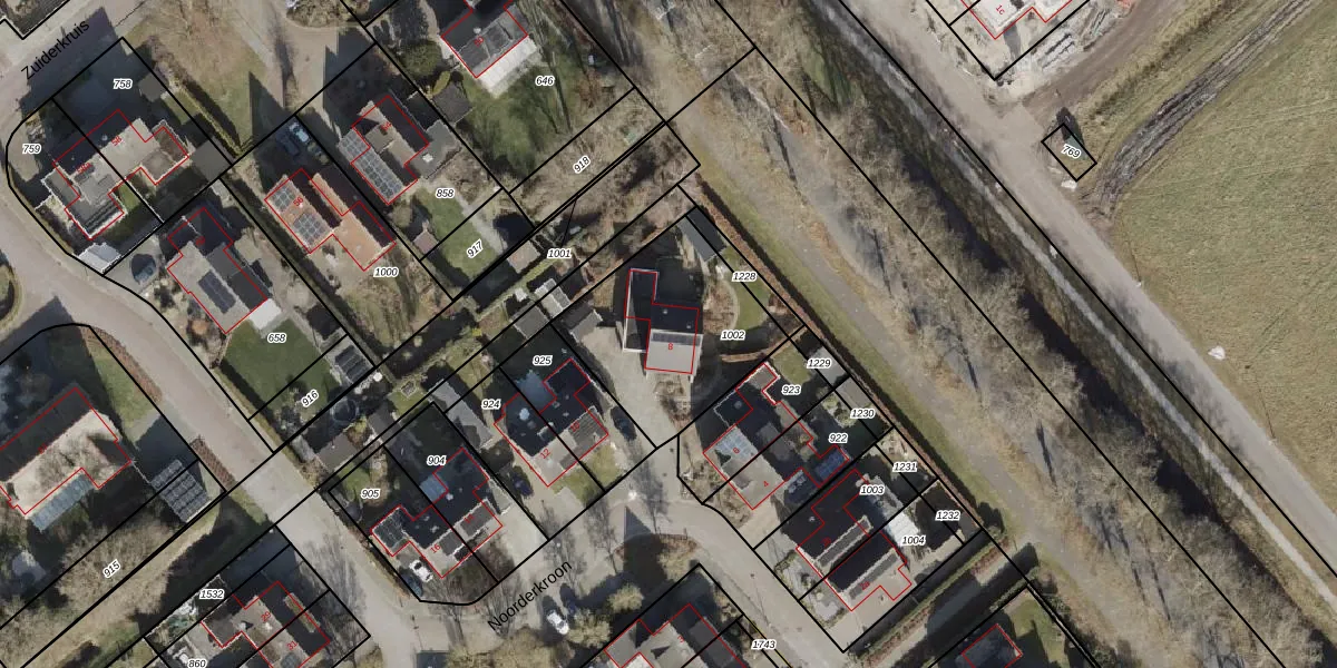 Het perceel waarop Noorderkroon 8 staat heeft een oppervlakte van 637 m². Dit is een groot perceel. De perceeloppervlakte wordt geregistreerd door het Kadaster. Gedetailleerde informatie over de maten van dit perceel kunt u vinden in het rapport Kadastrale kaart met maatvoering van Noorderkroon 8.